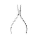 Alicate dental con extremo cóncavo, diseñado para manipular, ajustar o colocar componentes en procedimientos odontológicos y ortodónticos, proporcionando un agarre preciso y firme en espacios reducidos. Alta precisión, durabilidad, ergonomía y manejo seguro en tareas dentales.