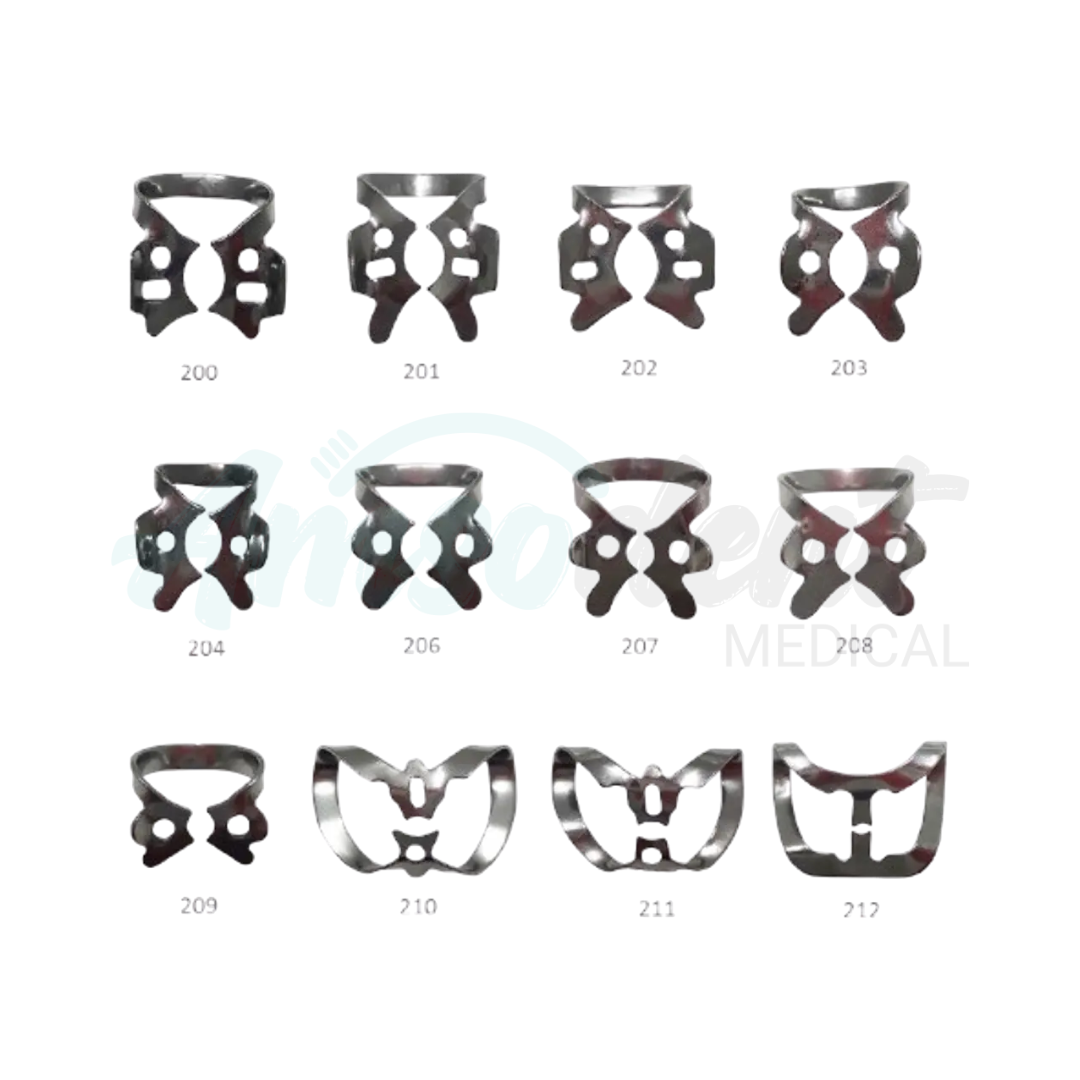 Los clamps dentales son dispositivos utilizados para asegurar la goma dique a las piezas dentales durante el aislamiento absoluto.