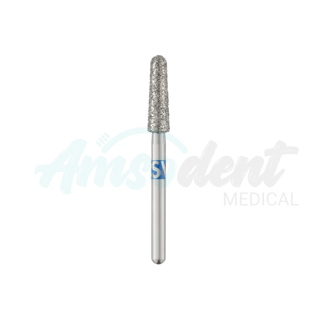 Fresa diamante de alta precisión con forma tronco, extensión redonda y larga. Diseñada para el acabado, pulido y la eliminación de material en procedimientos odontológicos, especialmente en restauraciones y preparaciones que requieren mayor alcance y precisión. Corte eficiente, acabado suave, alcance extendido, durabilidad. Grano fino.