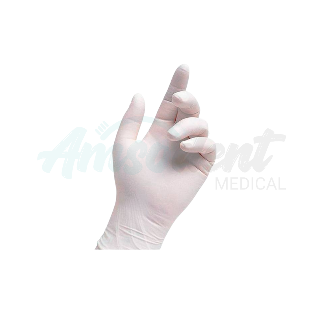 Guantes de látex estériles ligeramente empolvado utilizado en todo procedimiento quirúrgico con riesgo de contacto con agentes contaminantes, sangre y/o fluidos corporales, para prevenir y proteger a los pacientes, personal y público.