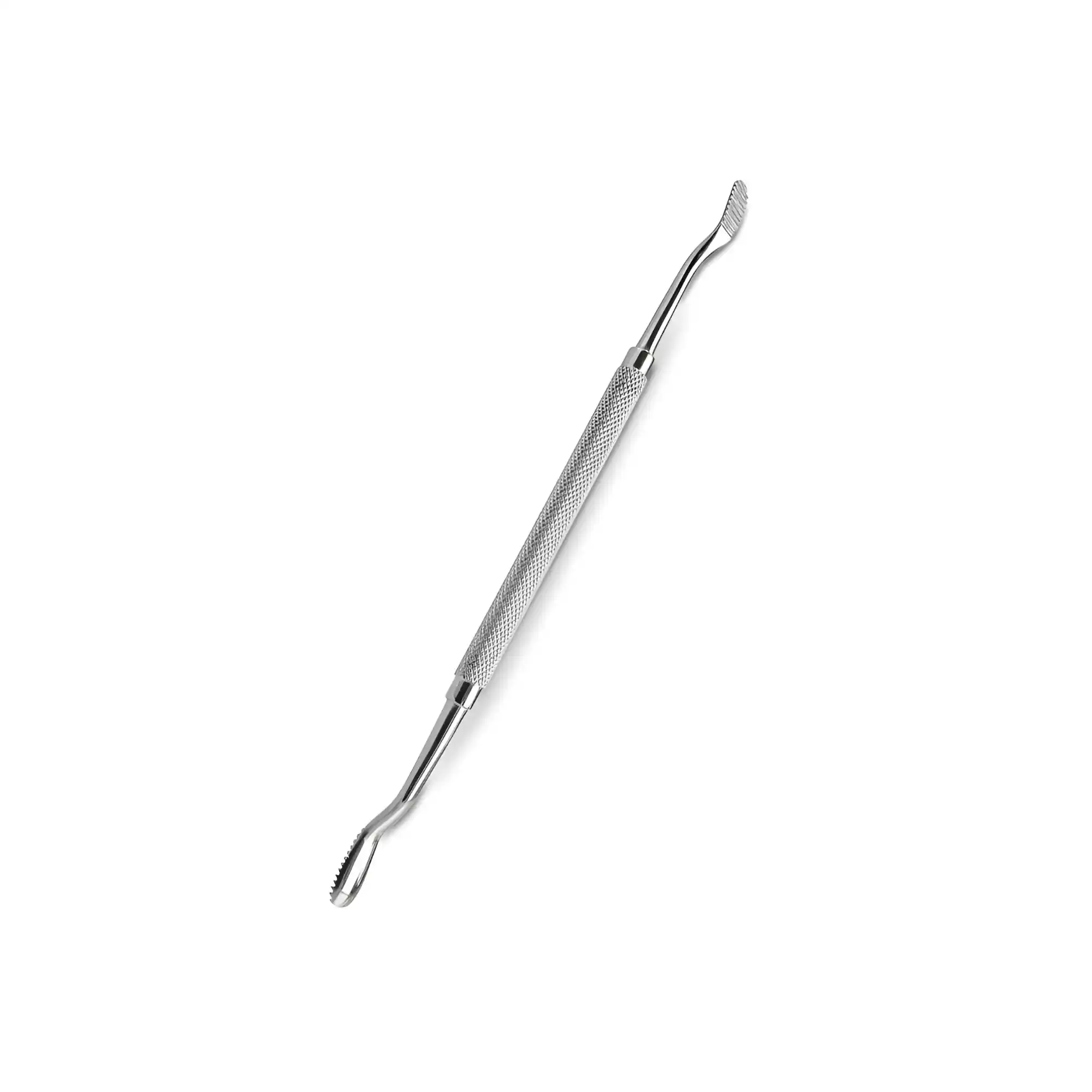 Diseño: Es un instrumento de doble extremo, con uno largo y otro corto, y su parte activa tiene forma de lima.