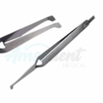 Instrumento de acero inoxidable, utilizado en ortodoncia para sujetar y posicionar con precisión los brackets en la superficie de los dientes.