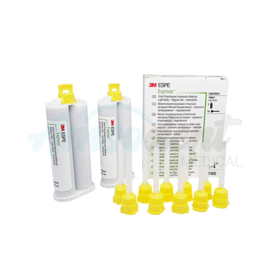 La Silicona Express pertenece a la categoría de materiales de impresión dental de alta precisión, utilizados para registrar con exactitud los tejidos orales en procedimientos de prótesis, coronas, puentes y otros tratamientos restauradores. Su fórmula de fraguado rápido y excelente reproducción de detalles permite obtener impresiones fieles en menos tiempo, optimizando la eficiencia clínica y el confort del paciente.